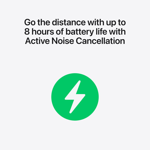 - Get up to eight hours of listening time with Active Noise Cancellation on a single charge