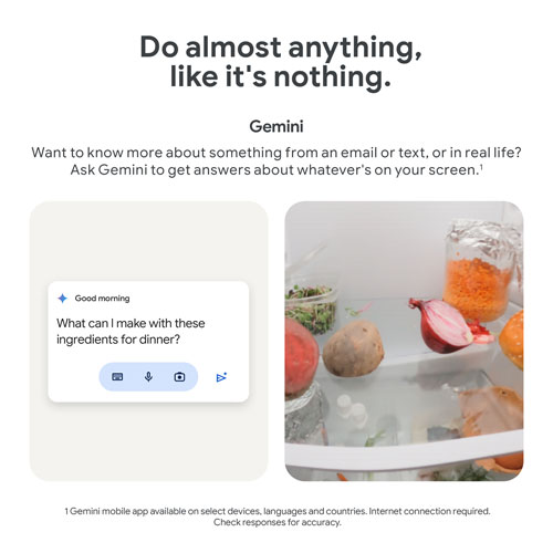 Gemini is your all-around AI assistant. Get answers to questions. Brainstorm ideas. Summarize an email. Hold the power button to kickstart any project with the help of AI